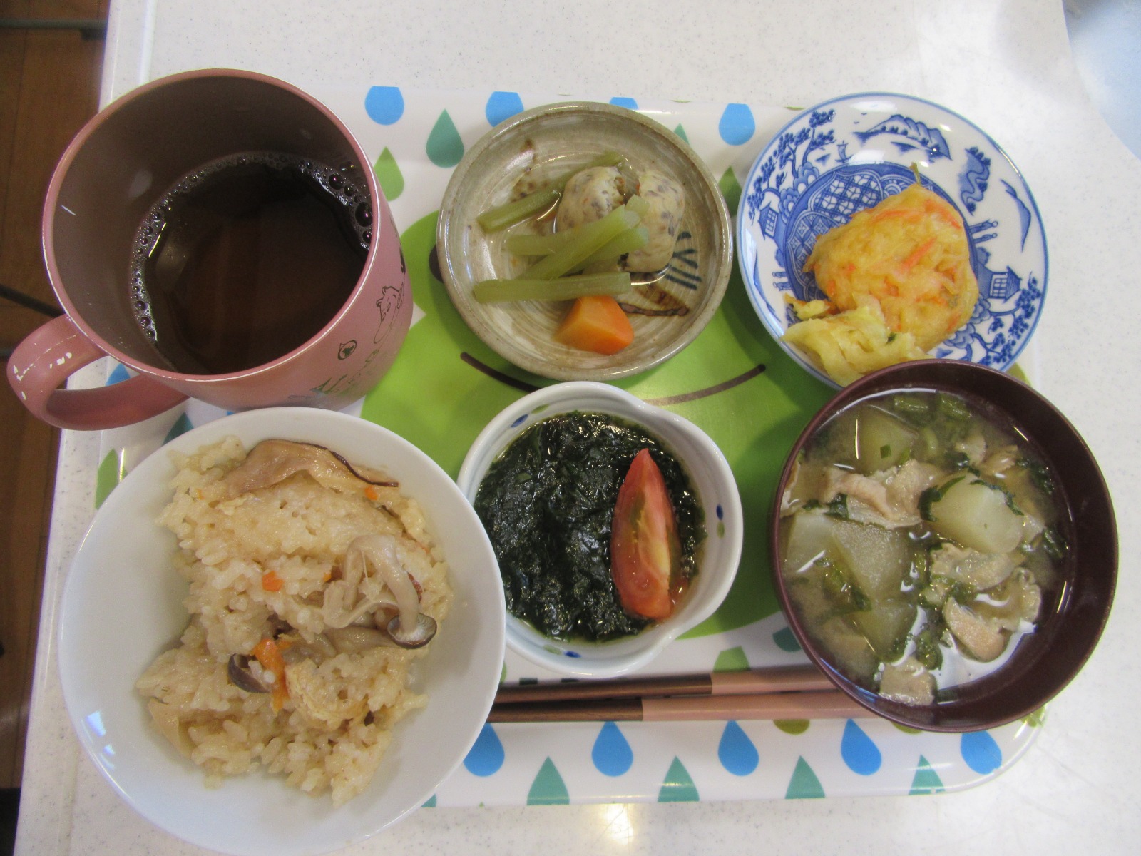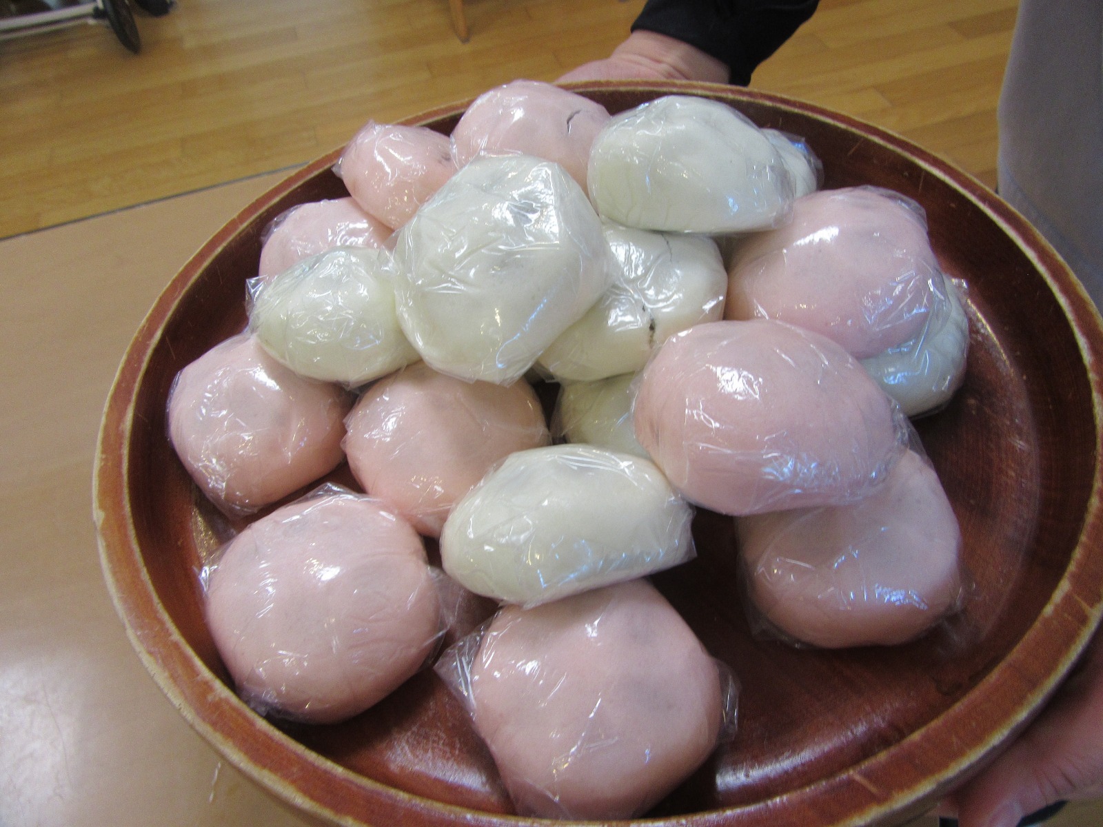 お昼ご飯には、職員から皆様の健康を願うメニューを・・・💑 おやつには、紅白饅頭を食べました😋