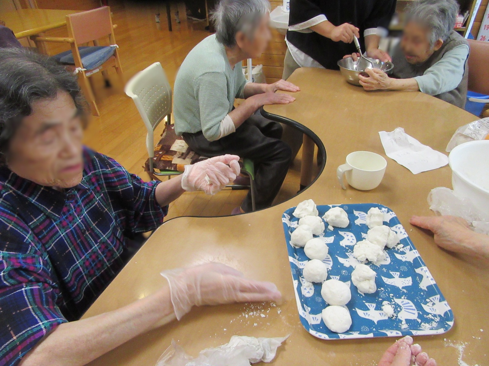粉と『ふげんの畑』で収穫した里芋をこね、丸くコロコロと形を整える際は大きくなりすぎたりと大変でしたが笑顔溢れる時間になりました😊