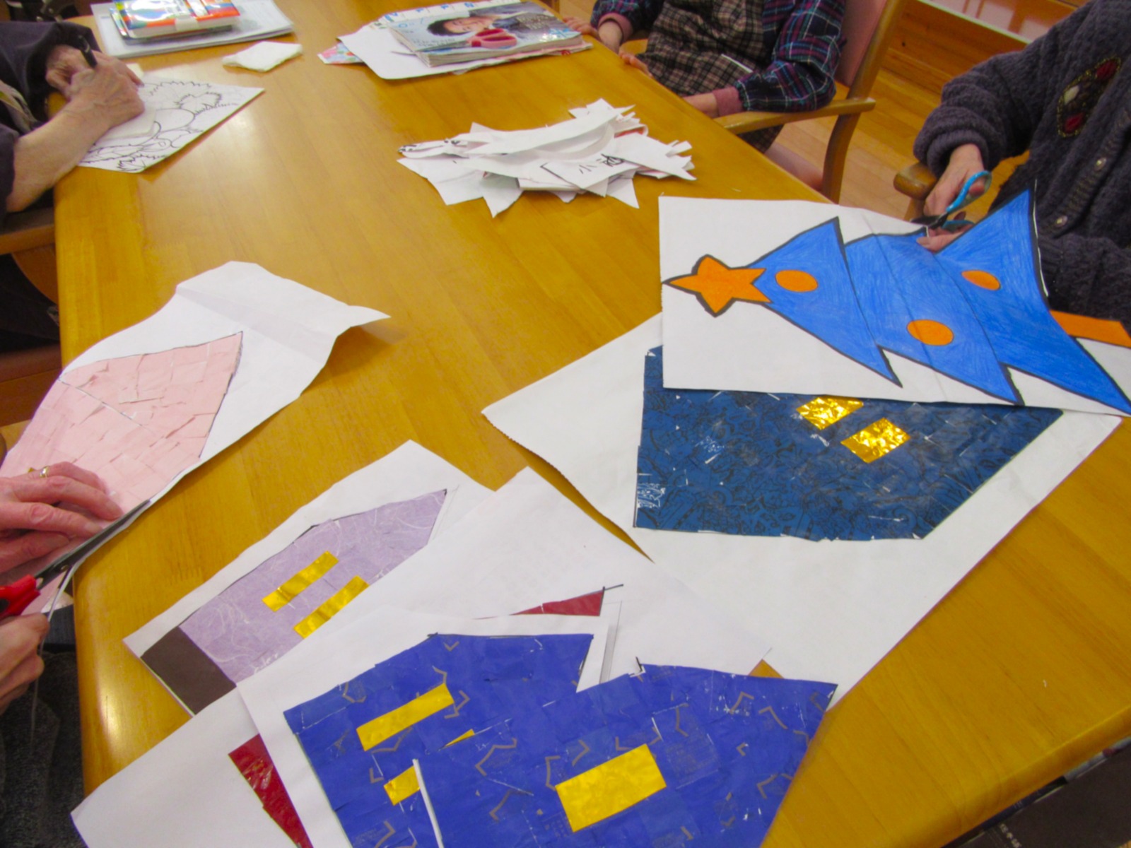 普段は「ちょっと苦手なの」と話されていた利用者様も「挑戦するわ!」とハサミを使って切り取りを行ったりと和気あいあいとした空間で制作されていました😊