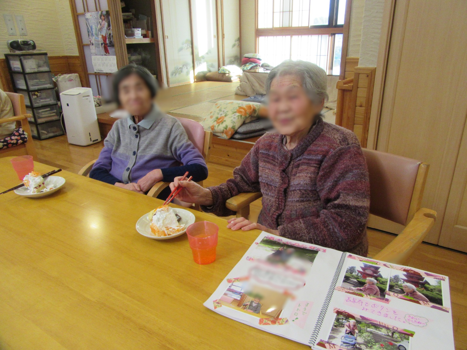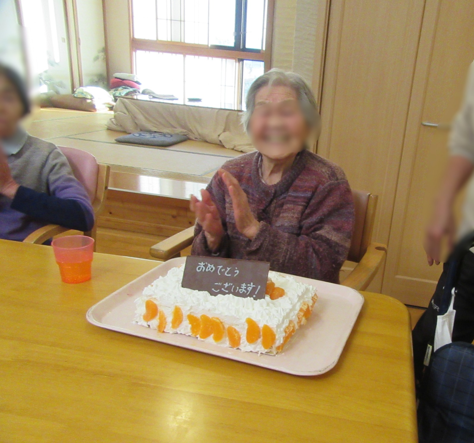 今月はお2人の利用者様にお昼のお祝い御膳とケーキ、バースデーカードを