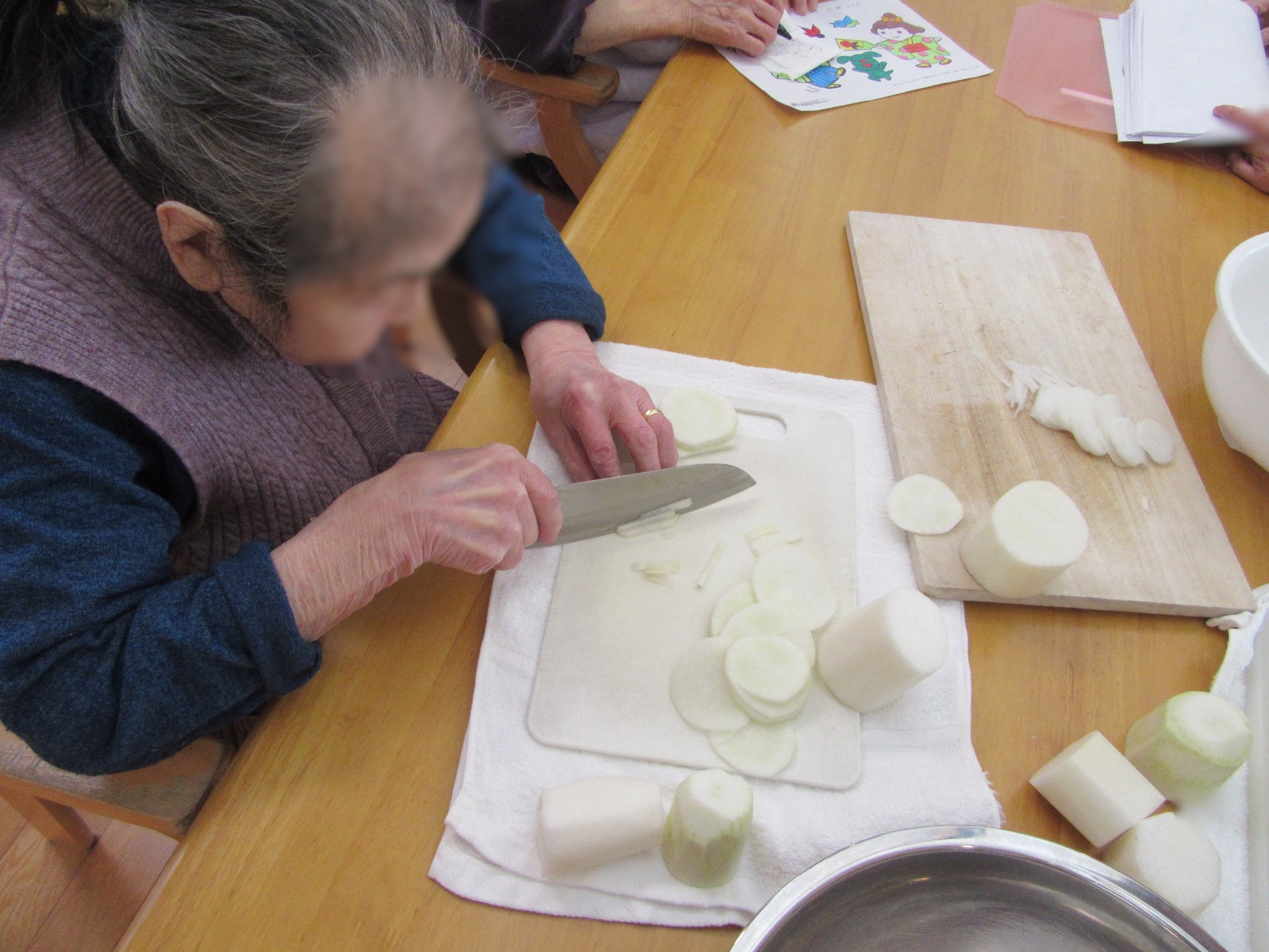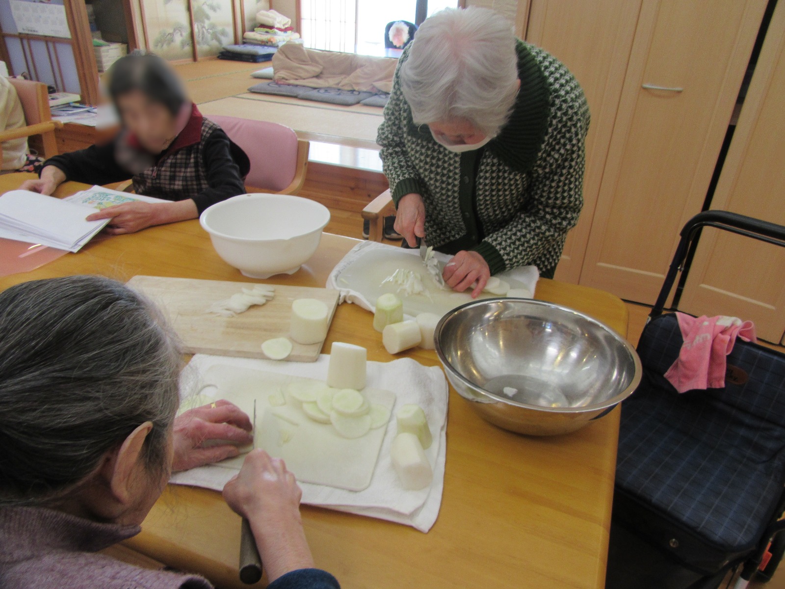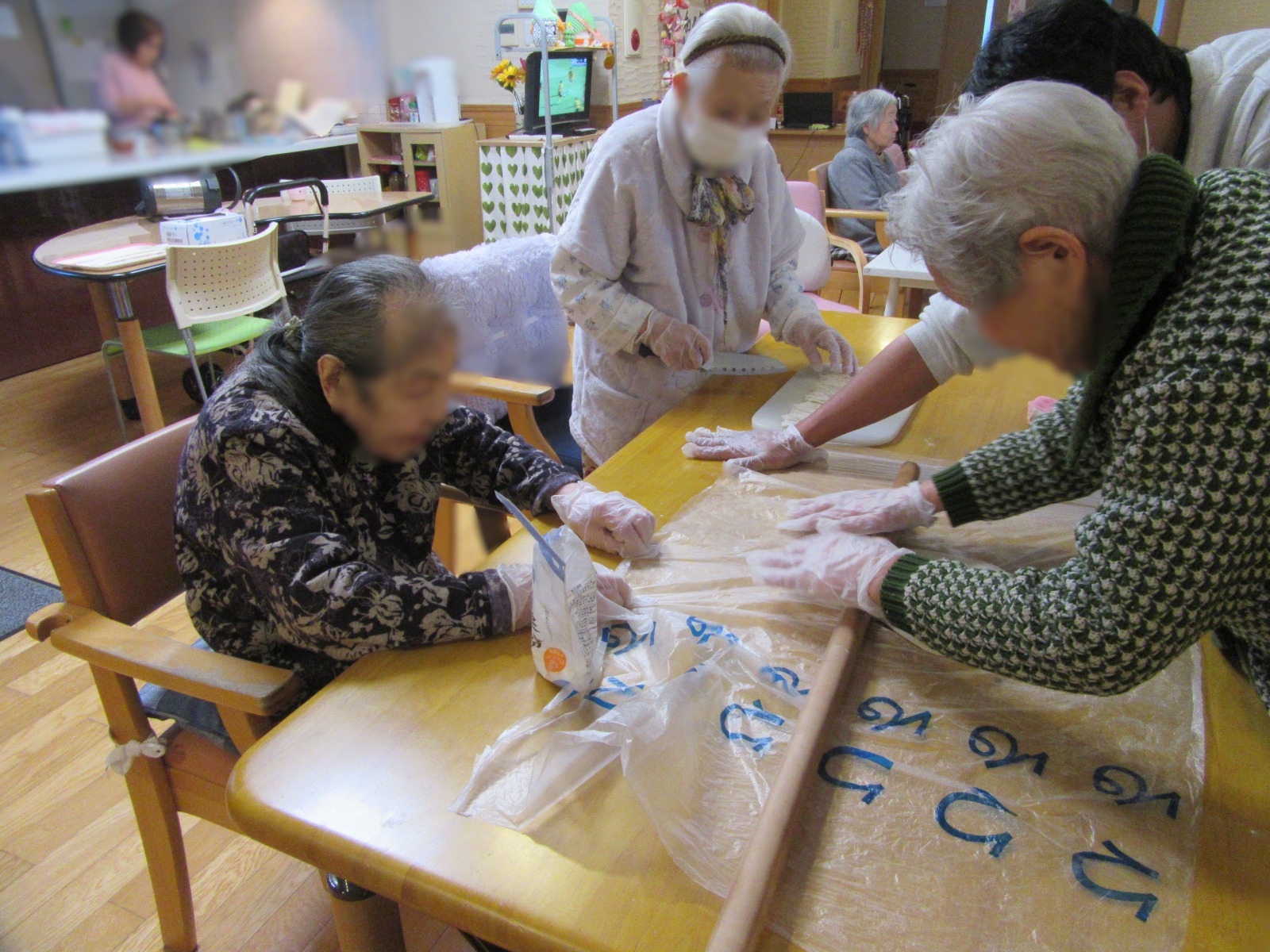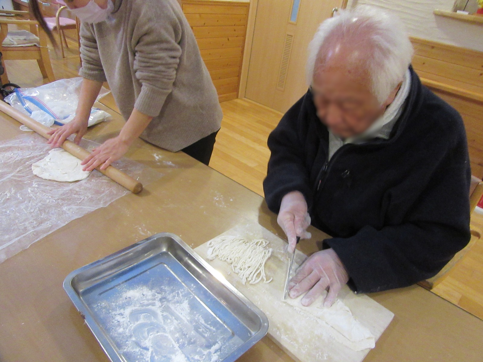 【年越しうどん作り】大晦日に年越しうどんを作り食べました。こねて伸ばして、切ってと職員と利用者様皆さんと協力して作りました😊