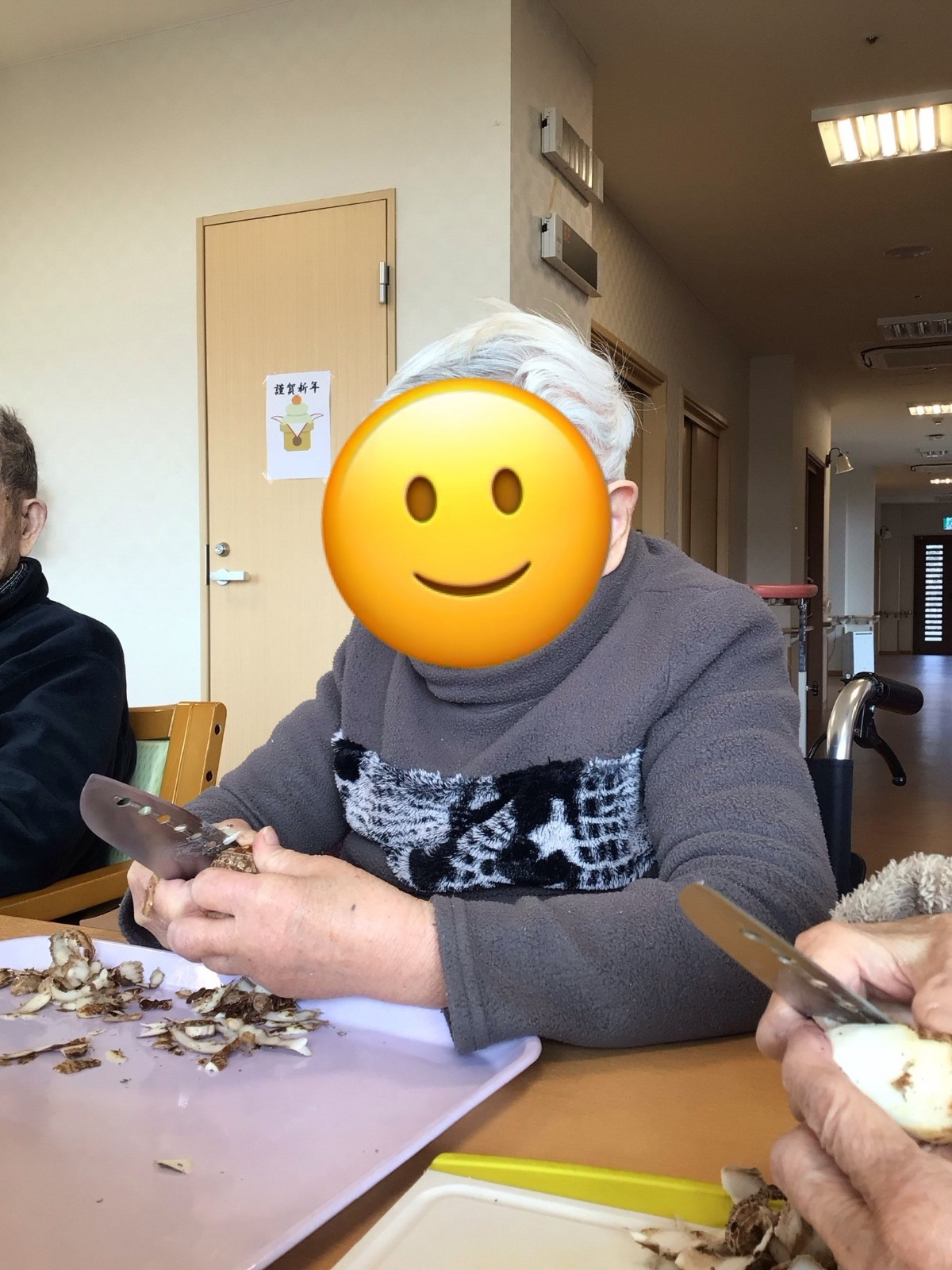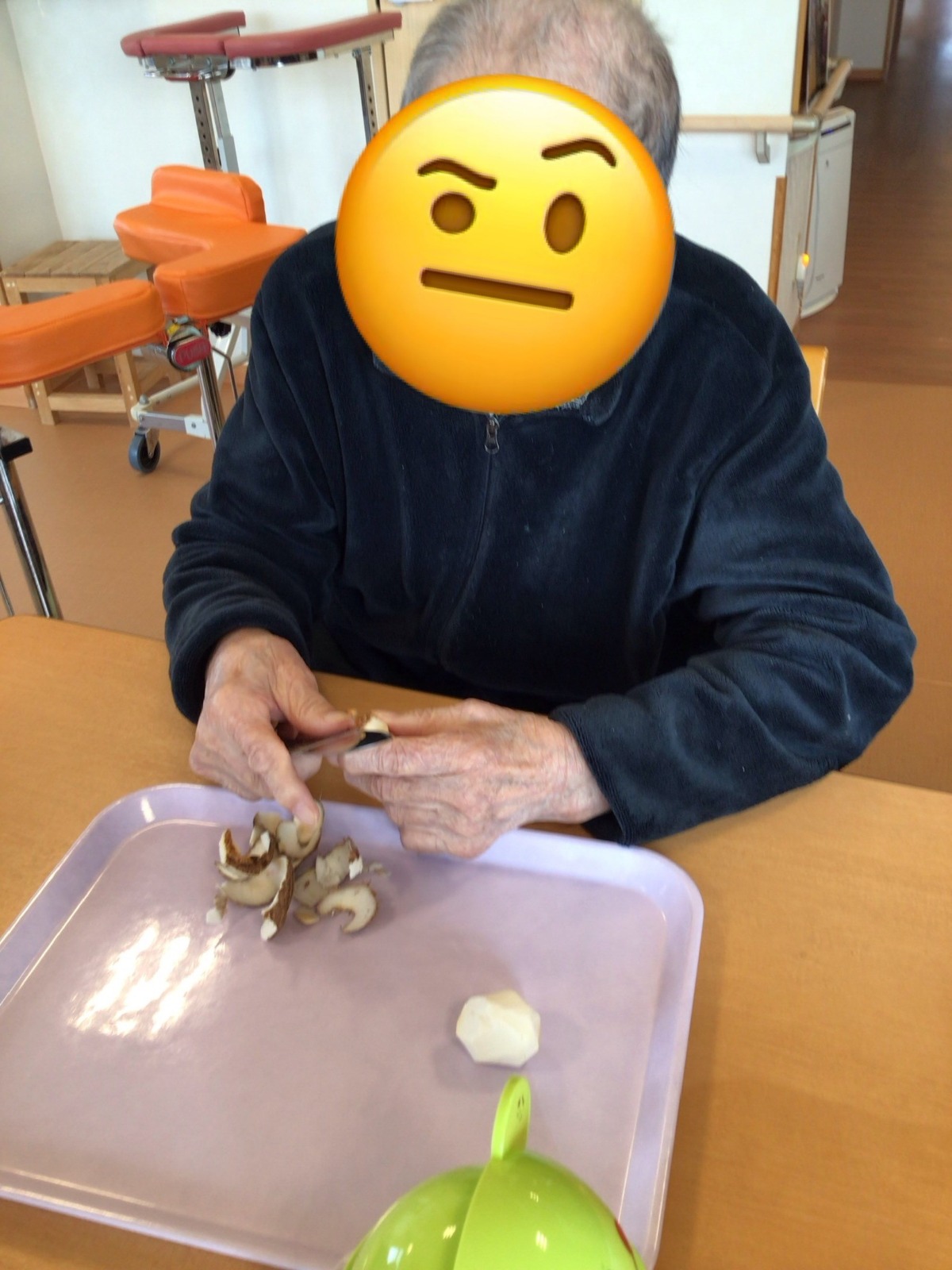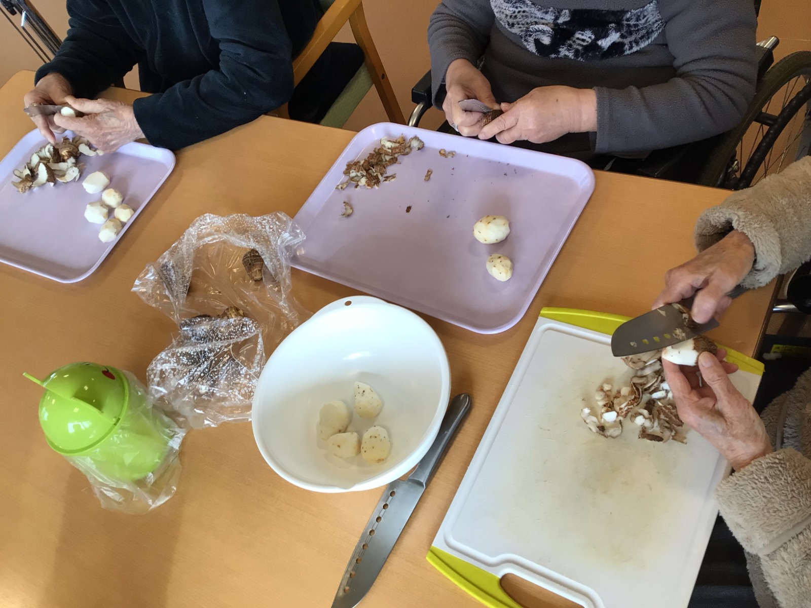 「わたしは芋がすきだから」と話しながら、進んで皮むきをしてくださった男性ご利用者様の新たな一面も見ることができました!