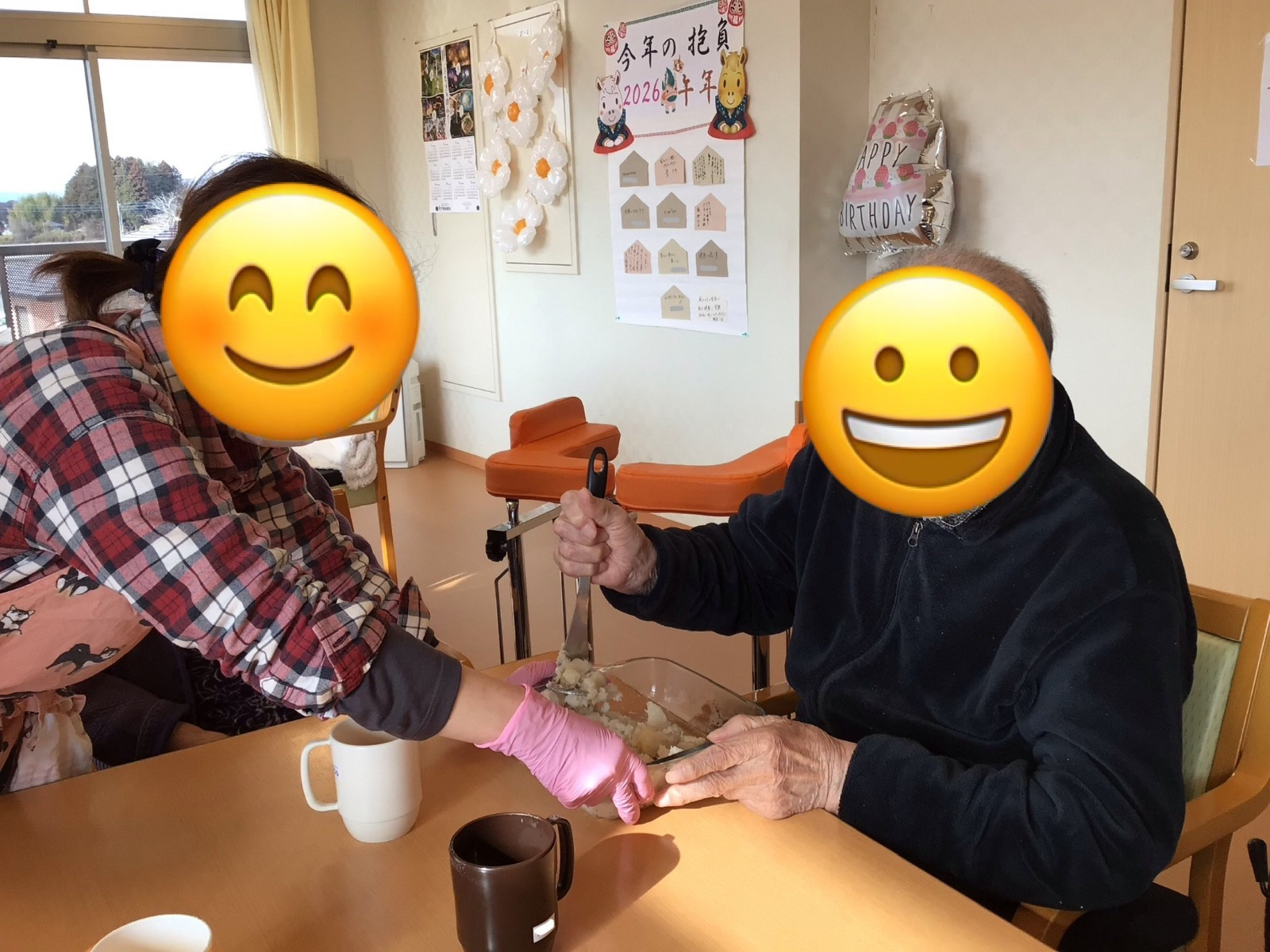 お正月に合わせて、高齢の方でも食べやすい里芋もち作りを行いました🎍