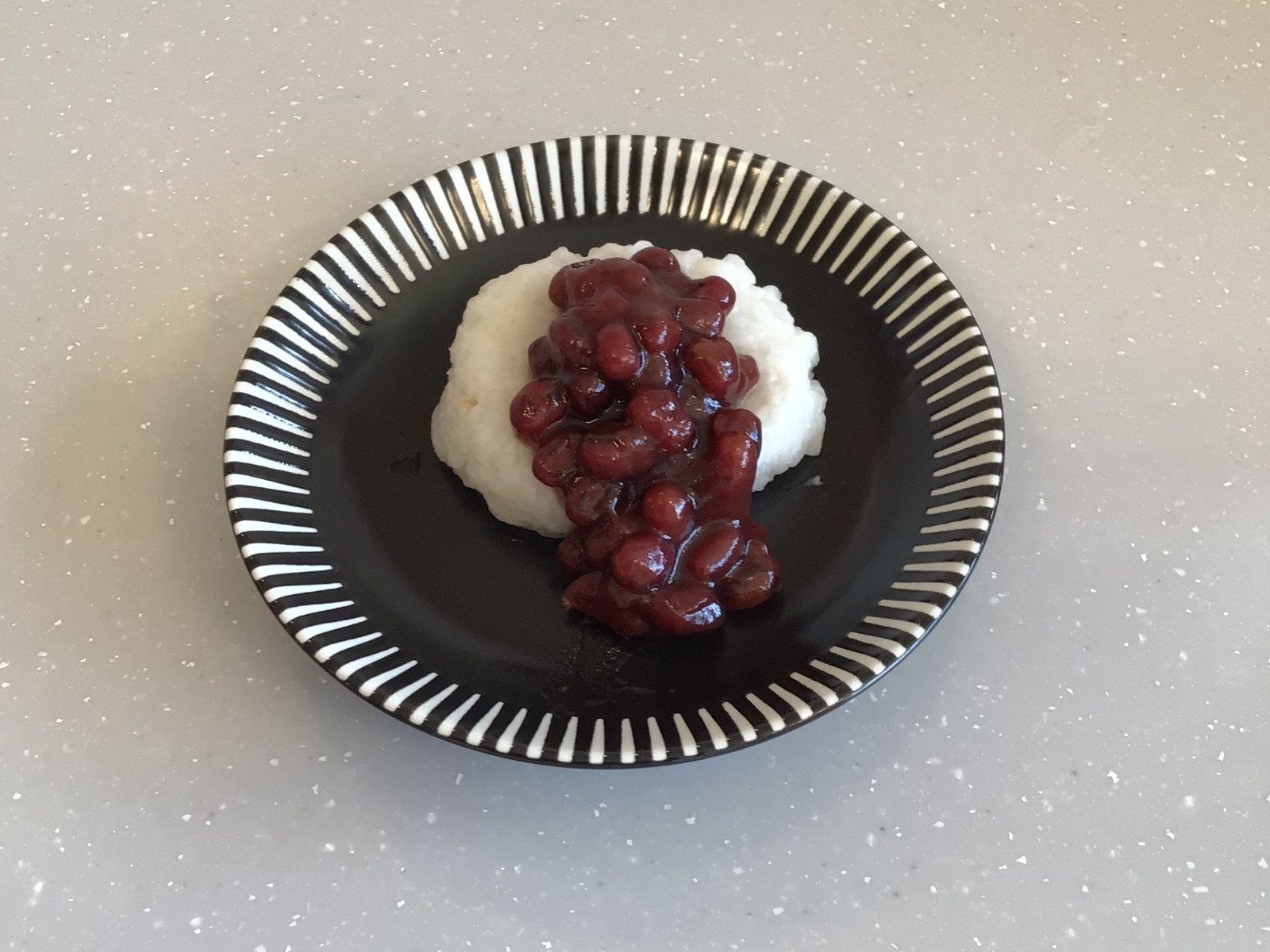 もちもちしていて、歯切れがよいおもちが出来上がり、小豆を添えて、ご利用者様と美味しくいただきました😋