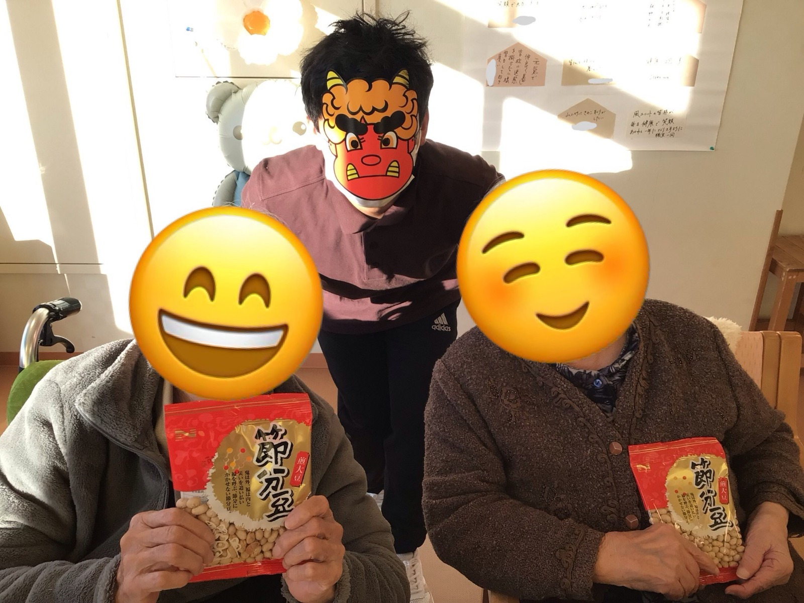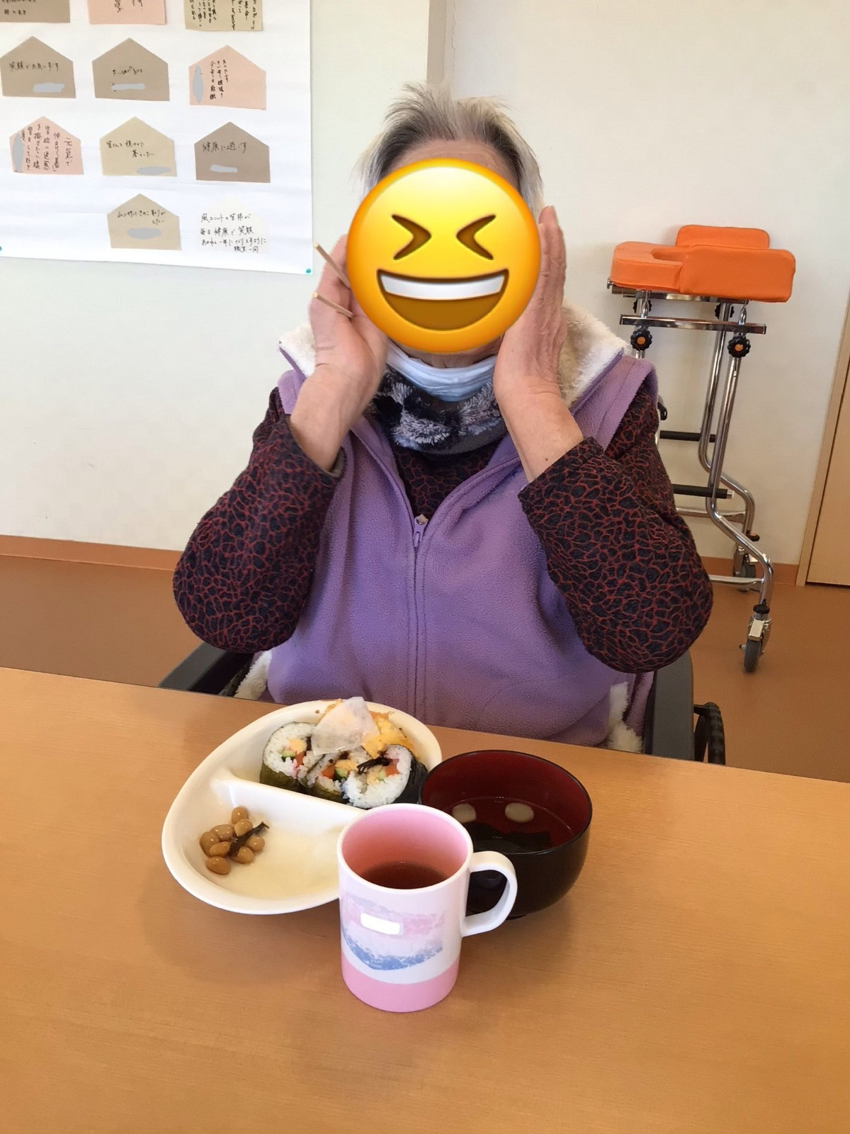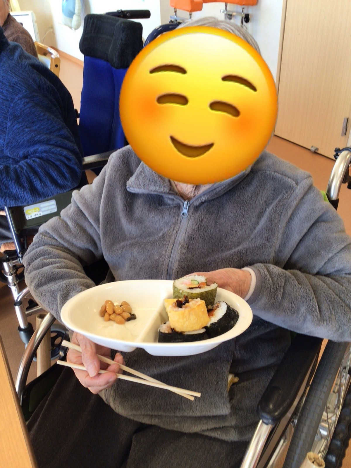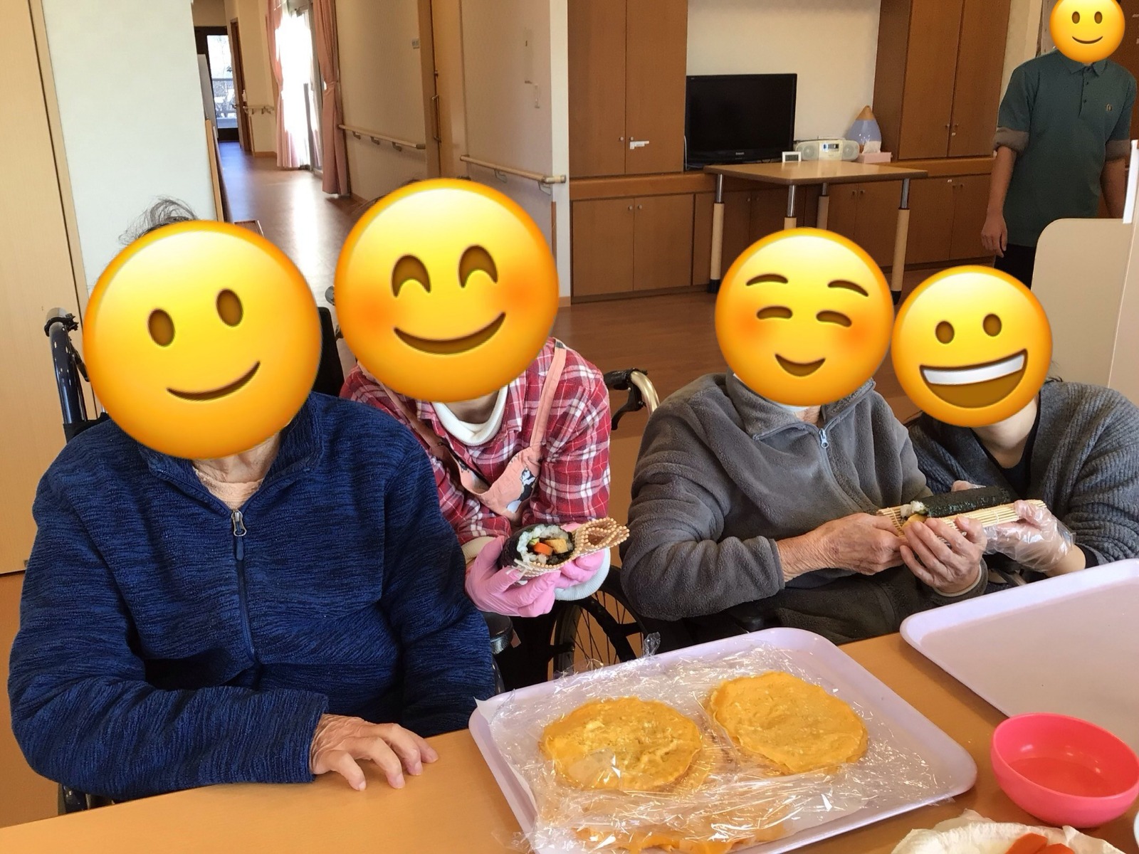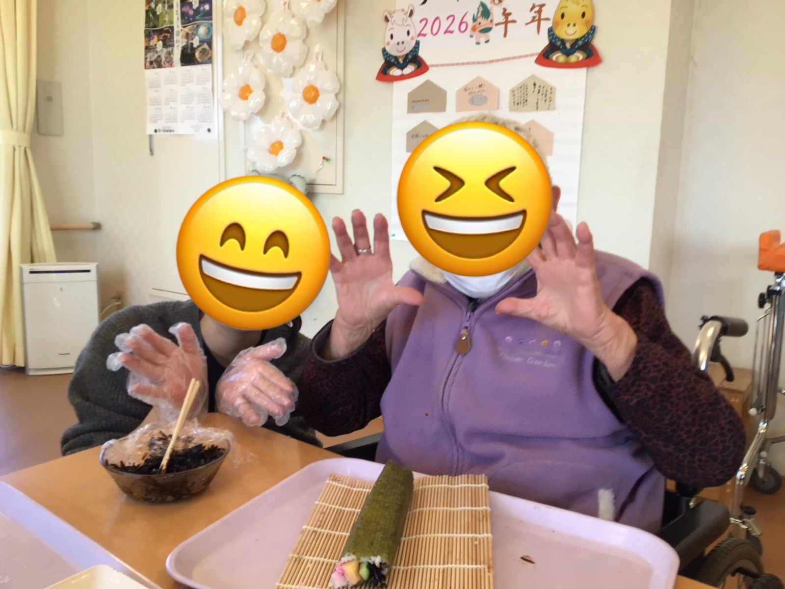 海苔だけでなく、薄焼き卵で巻いた恵方巻も作り、ご利用者様と一緒に恵方巻を楽しみました😋