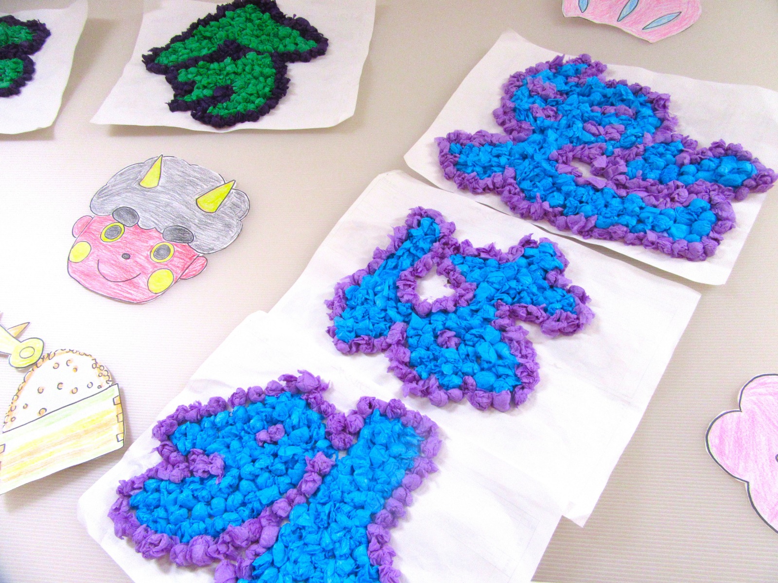 鬼のパンツの色塗りでは「鬼~のパンツはいいパンツ~♬」と口ずさみながら楽しく制作しました♪