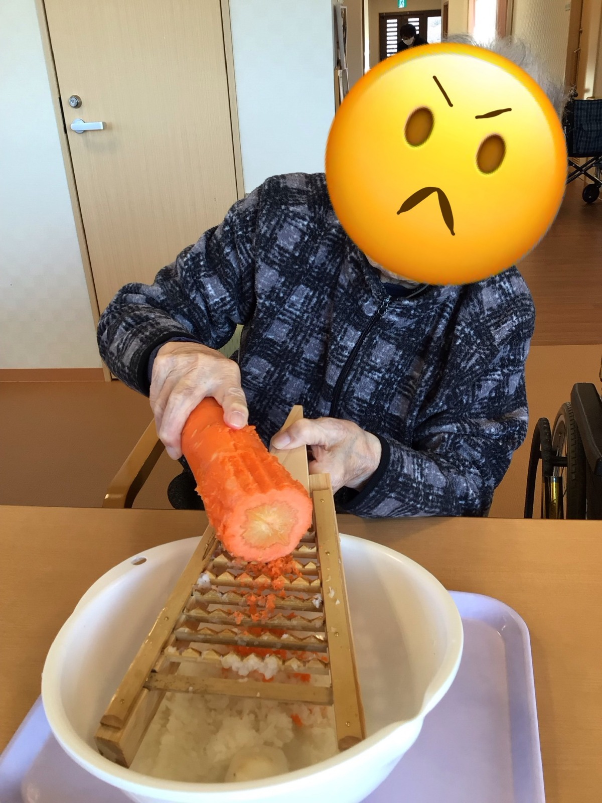 今回は、大根と人参、油揚げ、大豆、鮭フレークで簡単に作りました。職員は、ご利用者様と比べて、鬼おろしの扱いや作り方に不慣れでしたが、美味しく作ることができました😋