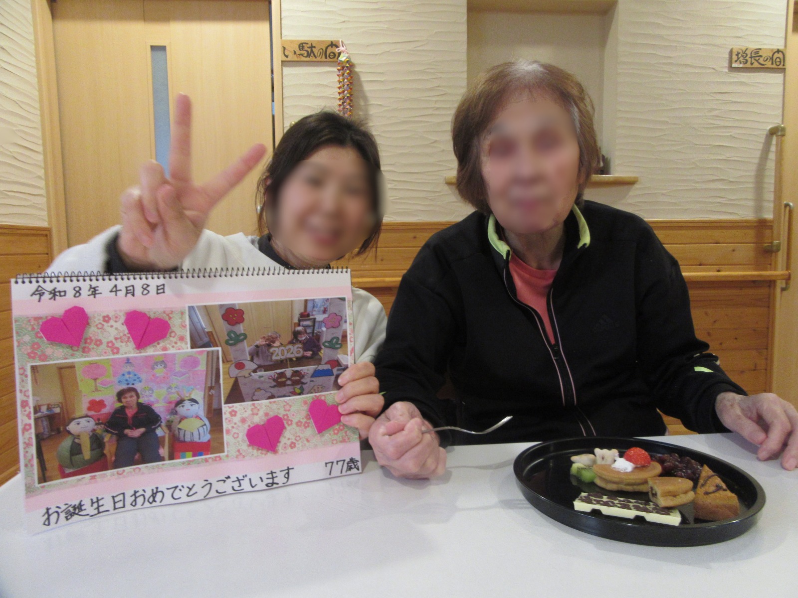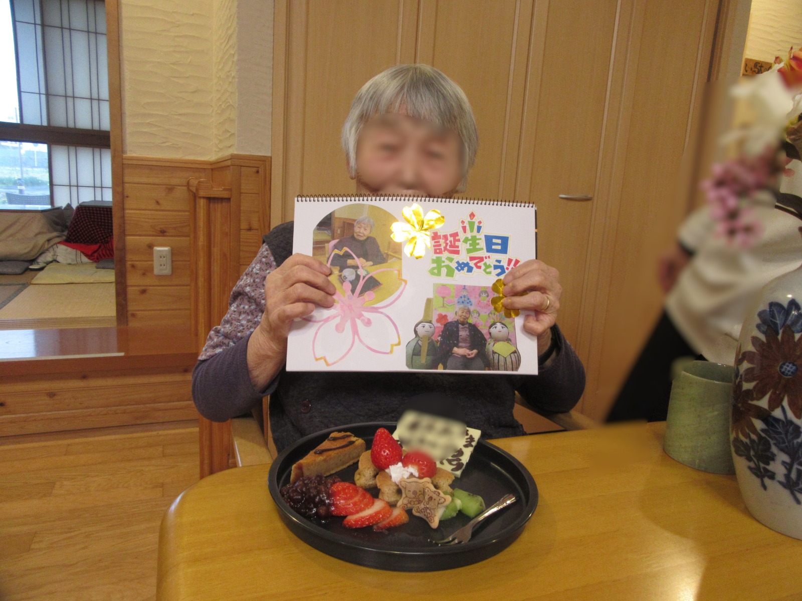 今月は2名の利用者様にお昼のお祝い御膳とケーキ、バースデーカードを