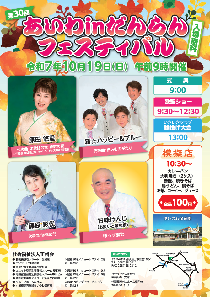 今年は、大ヒット曲『木曽路の女』『津軽の花』の歌手・原田悠里さんの歌謡ショーとなります🎤その他にも、素敵な歌に...漫談に...盛り沢山の歌謡ショーとなります。
